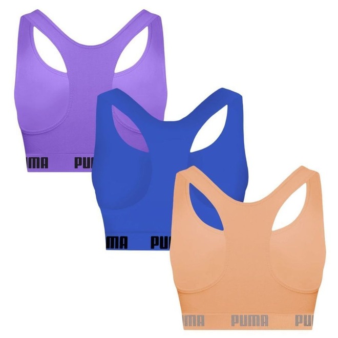 Ideal para quem busca conforto e praticidade no dia a dia ou durante os treinos, o Kit 3 Tops Puma Nadador Sem Costura combina leveza e liberdade de movimentos. Com design sem bojo, acabamento canelado e alças largas, proporciona sustentação moderada e ótima vestibilidade. O destaque fica por conta da modelagem nadador e da estampa da marca na barra, que garantem estilo e firmeza ao vestir.