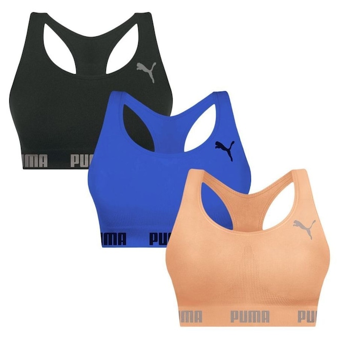 Ideal para quem busca conforto e praticidade no dia a dia ou durante os treinos, o Kit 3 Tops Puma Nadador Sem Costura combina leveza e liberdade de movimentos. Com design sem bojo, acabamento canelado e alças largas, proporciona sustentação moderada e ótima vestibilidade. O destaque fica por conta da modelagem nadador e da estampa da marca na barra, que garantem estilo e firmeza ao vestir.