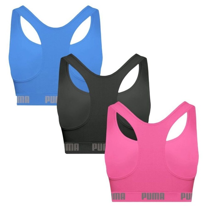 Ideal para quem busca conforto e praticidade no dia a dia ou durante os treinos, o Kit 3 Tops Puma Nadador Sem Costura combina leveza e liberdade de movimentos. Com design sem bojo, acabamento canelado e alças largas, proporciona sustentação moderada e ótima vestibilidade. O destaque fica por conta da modelagem nadador e da estampa da marca na barra, que garantem estilo e firmeza ao vestir.