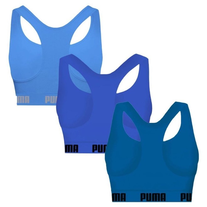 Ideal para quem busca conforto e praticidade no dia a dia ou durante os treinos, o Kit 3 Tops Puma Nadador Sem Costura combina leveza e liberdade de movimentos. Com design sem bojo, acabamento canelado e alças largas, proporciona sustentação moderada e ótima vestibilidade. O destaque fica por conta da modelagem nadador e da estampa da marca na barra, que garantem estilo e firmeza ao vestir.