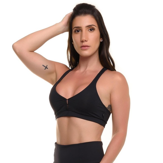 Top em poliamida, preto, com fator de proteção solar UV50+, Garantia de 3 meses, e contra defeito de fabricação.