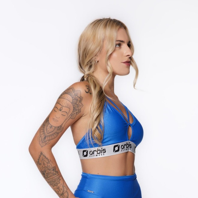 Top com decote frontal detalhe em tiras, com elástico Orbis no cós, toque macio e confortável. Exerce sustentação para as mais intensas práticas de exercícios.