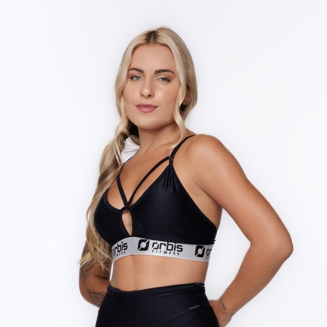Top com decote frontal detalhe em tiras, com elástico Orbis no cós, toque macio e confortável. Exerce sustentação para as mais intensas práticas de exercícios.