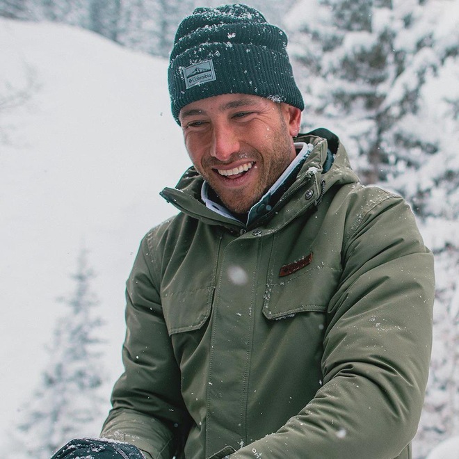 Este gorro clássico com barra dobrada envolve sua cabeça com um tricô canelado macio. Use-o para se aquecer em qualquer aventura na neve.