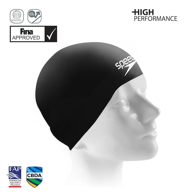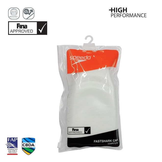 A Speedo FASTSHARK CAP, aprovada pela FINA para competições oficiais é touca indispensável aos nadadores High Performance. Com design moldado em 3D e polimento interior, maior agarre ao cabelo foi testada e aprovada por atletas de elite do país. Diferentes espessuras criam perfeito equilíbrio entre tensão e flexibilidade para excepcional hidrodinâmica com aumento dos ?streams?. Recorte especial na nuca para melhor conforto. Também conhecida como touca capacete.