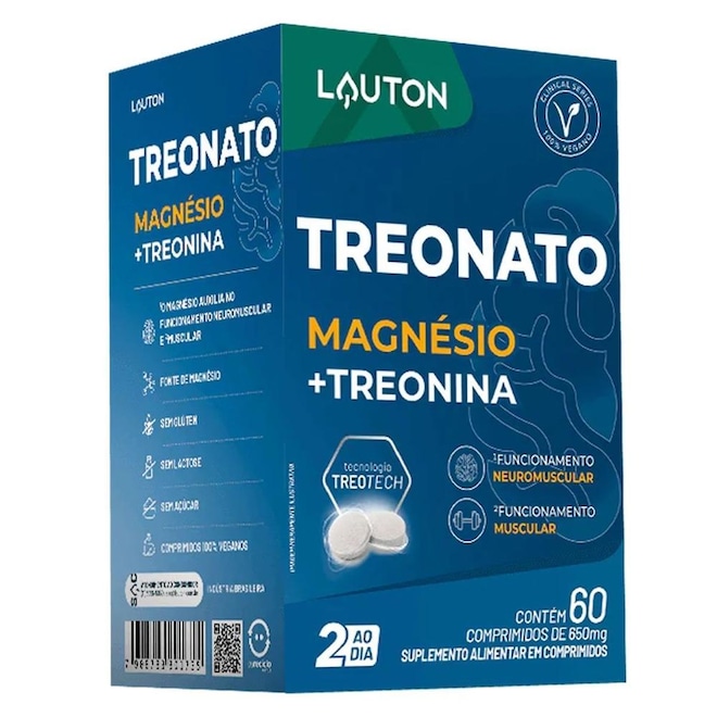 O Treonato Lauton é o suplemento ideal para o cuidado diário da sua saúde, ao comprar este suplemento você leva consigo um grande auxiliador do funcionamento muscular e neuromuscular, com uma alta concentração e contando não só com os resultados do magnésio mas também da treonina, é a combinação de magnésio, que é um mineral essencial para o corpo humano e treonina que é um aminoácido essencial, o qual o corpo por si só não produz e se faz necessária suplementação de uma boa e confiável opção.