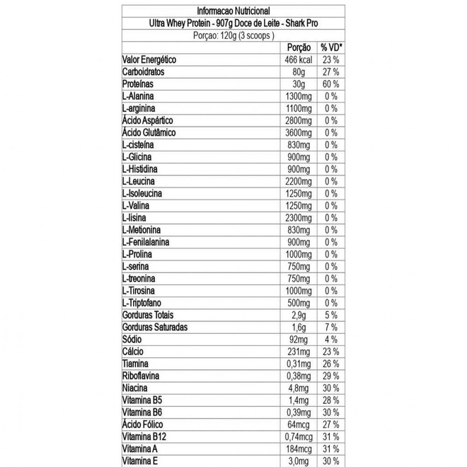 Maltodextrina, proteína concentrada do soro de leite, colágeno hidrolisado, clara de ovo desidratada, proteína isolada do soro de leite, biscoito moído, mix de minerais e vitaminas (acetato de retinol, mononitrato de tiamina, riboflavina, niacinamida, pantotenato de cálcio, cloridrato de piridoxina, cianocobalamina, ácido ascórbico, acetato de tocoferol, D-biotina, ácido fólico, carbonato de cálcio, sulfato de cobre, picolinato de cromo, iodeto de potássio, molibdato de sódio, selenito de sódio), aromatizantes, edulcorante sucralose e acessulfame de potássio. ALÉRGICOS: CONTÉM DERIVADOS DE LEITE E OVO. CONTÉM LACTOSE.