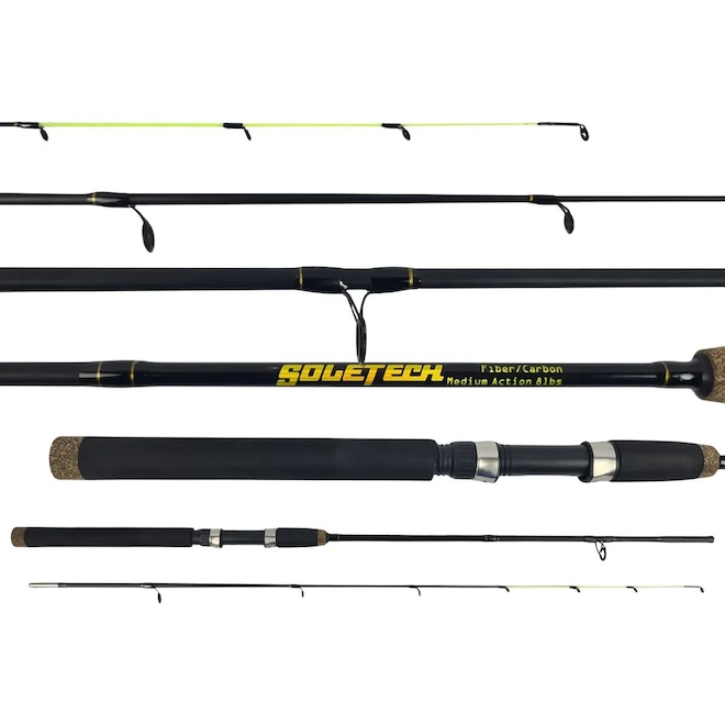 A Vara Soletech é indicada para pesca ultralight com molinete, com estrutura composta por fibra de vidro e carbono. Possui ação média e potência ultraleve, proporcionando maior controle no uso de iscas leves.