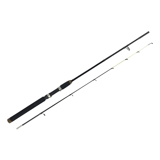 Conta com construção em duas partes para facilitar o transporte e armazenamento, além de cabo em EVA e cortiça para melhor manuseio durante a pesca.