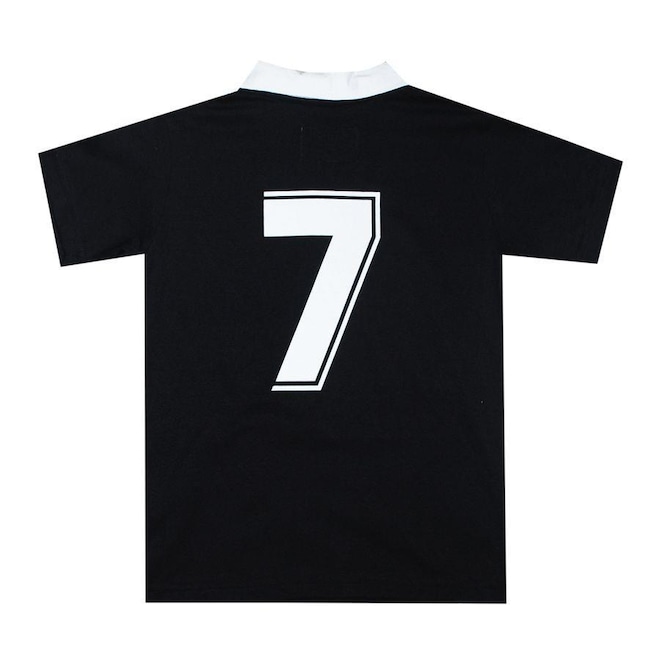 Produto Oficial Licenciado Gola Polo V Escudo flocado no peito esquerdo Faixa branca cortada na frente em tecido branco Número 7 silkado nas costas Qualidade Liga Retrô Visual Retrô Tecido 100% algodão premium