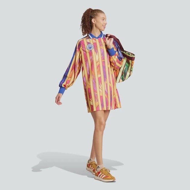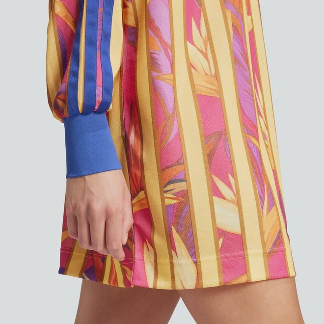 Aventure-se em um oásis de estilo esportivo com este vestido adidas premium. Desenvolvido em parceria com a FARM Rio, ele exibe uma vibrante estampa tropical para um look de espírito livre. O tecido macio de malha dupla e a silhueta folgada inspirada em camisas permitem que você se movimente livremente. Combine com um tênis para elevar a vibe esportiva ou com saltos para sair à noite. Independente do seu estilo, você incorpora a energia de uma escapada ao oásis no seu look do dia a dia. Este produto é 100% feito com materiais reciclados. Ao escolher o reciclado, podemos reutilizar materiais já criados, o que ajuda a reduzir o desperdício e a nossa dependência de recursos finitos, além de reduzir a pegada dos produtos que fabricamos.