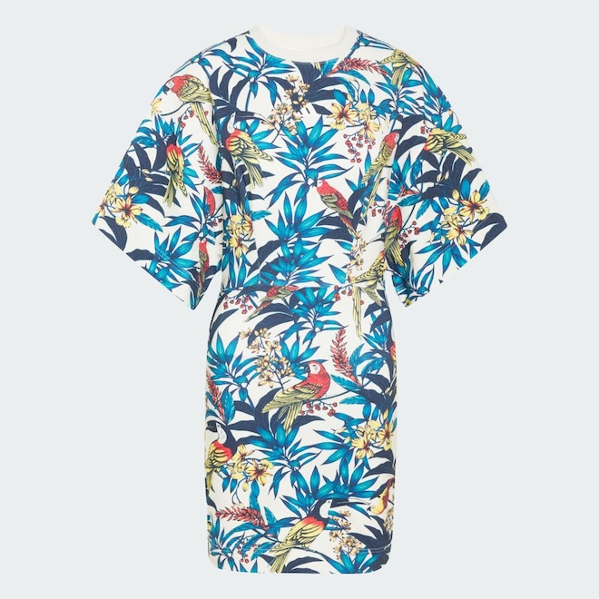 O vestido adidas x FARM Rio mescla a vibrante cultura de rua com o design moderno de moda esportiva. Parte da coleção Courts of Culture, ele celebra a energia das quadras de basquete do centro da cidade com as padrões tropicais da FARM Rio. Confeccionado em um tecido macio de malha simples, este vestido de tamanho oversized oferece uma silhueta folgada para um movimento pouco esforço. Sua construção em malha elástica oferece flexibilidade e conforto, tornando-o um complemento versátil para um guarda-roupa moderno. Com acabamento sutil da marca adidas, este vestido é uma declaração de criatividade e espírito comunitário. Seja na academia ou nas ruas, ele reflete a energia lúdica e a cultura inclusiva do esporte.