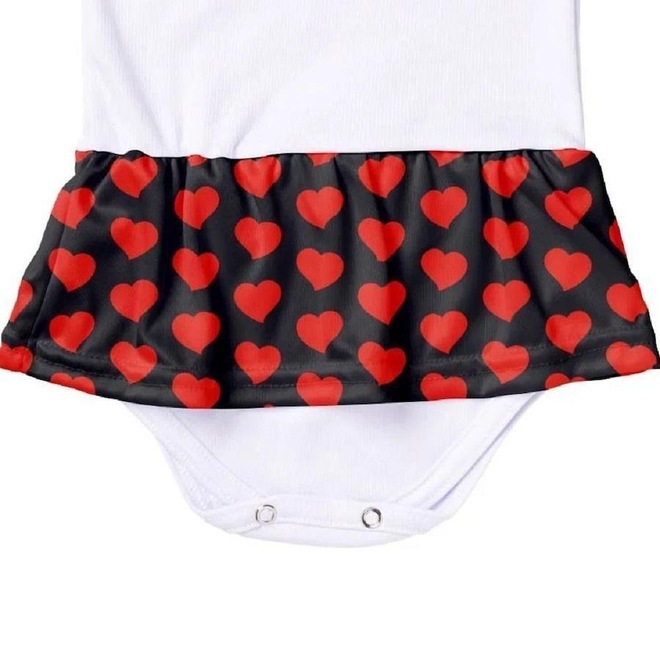 Body vestido do Flamengo, com estampa de corações, ideal para vestir o seu bebê dos pés a cabeça com as cores do Mengão e expressar todo amor pelo Flamengo desde os primeiros dias de vida.