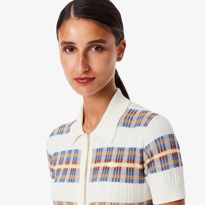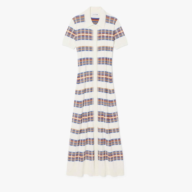 Esse vestido é fruto de 90 anos de elegância e expertise da Lacoste. Um estilo versátil, com abertura com botões longa, com corte feminino sofisticado em tecido de malha canelada macia, sedosa, fluida. Um design sofisticado, acabado com o crocodilo típico sutil e detalhes premium, incluindo colarinho polo.