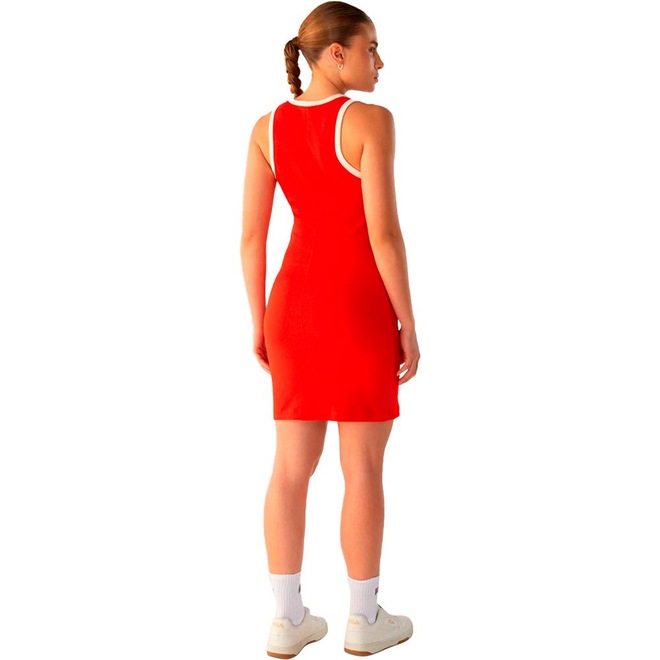 Aposte em elegância e conforto com o Vestido Fila Dress Rib Feminino, confeccionado em malha de viscose com elastano que garante caimento perfeito e toque macio. O modelo sem mangas traz decote reto e acabamento com debrum nas cavas e decote, valorizando o design minimalista e moderno. Produzido com responsabilidade, o tecido conta com os certificados BCI e OEKO-TEX, que asseguram matéria-prima sustentável e livre de químicos nocivos. O logo FILA Linear bordado no peito adiciona um toque de autenticidade à peça. Ideal para compor looks casuais com conforto e estilo!60% poliéster, 32% viscose e 8% elastano;Decote reto;Modelagem slim fit.