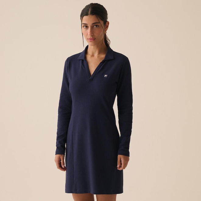 O Vestido Feminino FILA Fit Camisa Polo Letter Touch combina autenticidade e funcionalidade em uma peça atemporal. Confeccionado em malha de poliamida com elastano, oferece respirabilidade e proteção UV. Apresenta modelagem regular com mangas longas, gola polo e cobregola, além de peitilho com botões de pressão. Os recortes anatômicos frontais e traseiros proporcionam ajuste confortável, enquanto o bordado F-BOX no peito destaca a assinatura clássica da marca.