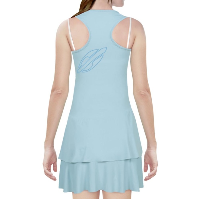 - Detalhamento: Vestido com gola redonda, alça regata e bojo removível, com ótimo conforto e liberdade de movimento. Traz logo vertical na frente, emblema da marca nas costas e saia em duas camadas com babados, que oferece leveza e fluidez. Uma peça leve, moderna e prática para dentro e fora da quadra, acompanha shorts na cor branca com suave compressão;