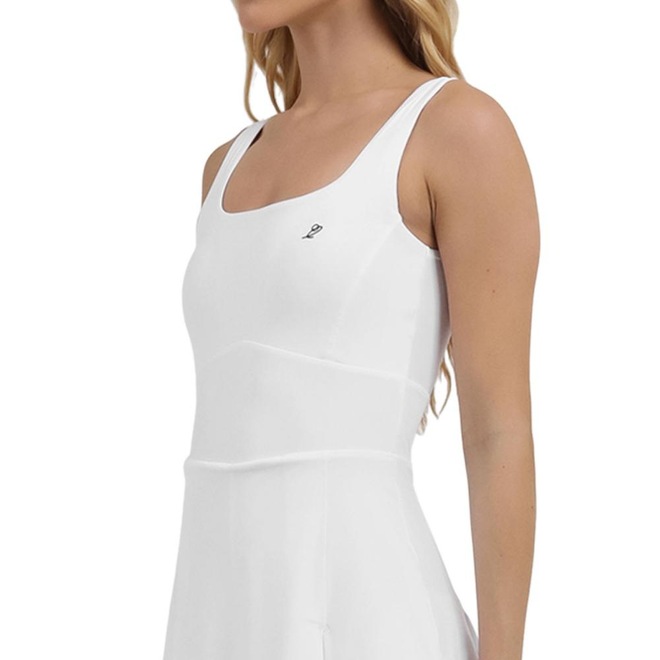 - Detalhamento: Gola quadrada com alça regata e bojo removível. Logo da marca na parte frontal esquerda, na altura do busto, e nas costas, centralizado. Possui recortes e modelagem acinturada que valorizam a silhueta e proporcionam total liberdade de movimento. A saia com pregas laterais e o short interno embutido, de suave compressão e com bolso invertido para maior praticidade, asseguram conforto e segurança durante o jogo. O tecido é leve e macio, garantindo ainda mais conforto;