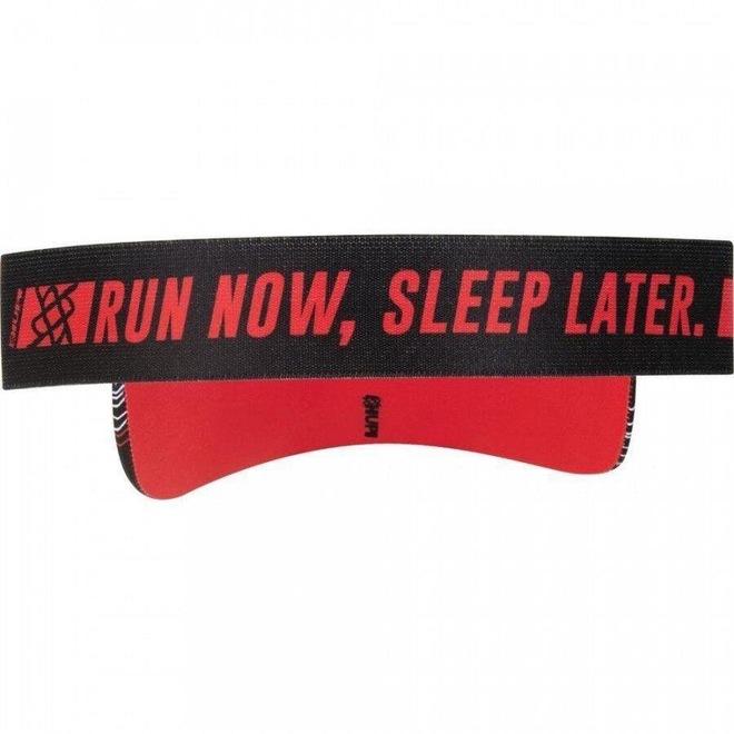 A parte interna da faixa, na região da aba possui um tecido aveludado, evitando que o suor escorra em direção aos olhos.