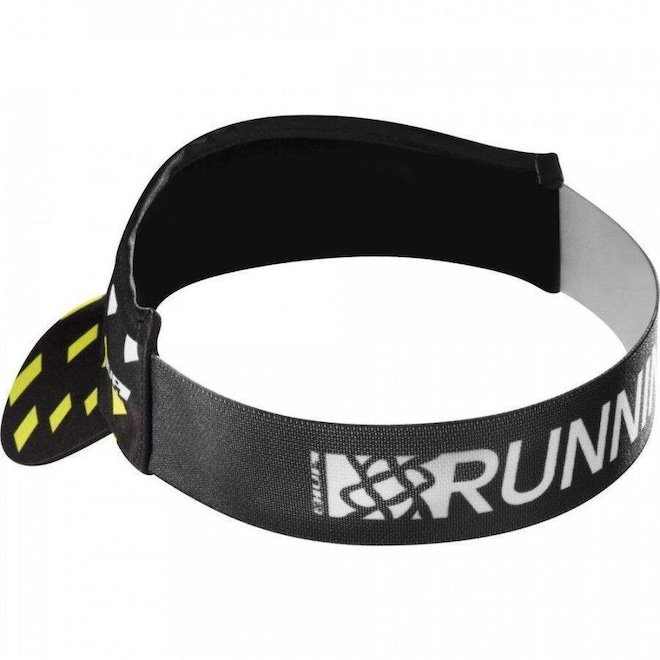 A parte interna da faixa, na região da aba possui um tecido aveludado, evitando que o suor escorra em direção aos olhos.