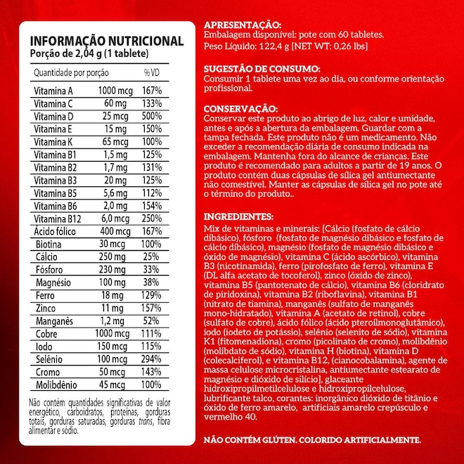 VITA PURE SUPER é um suplemento multivitamínico mineral superconcentrado, que foi desenvolvido para atender com precisão às necessidades de atletas e praticantes de atividades físicas. Com sua alta concentração por dose e uma fórmula equilibrada, VITAPURE SUPER favorece a absorção dos nutrientes auxiliando no desempenho esportivo, metabolismo energético, saúde óssea, muscular e imunidade.