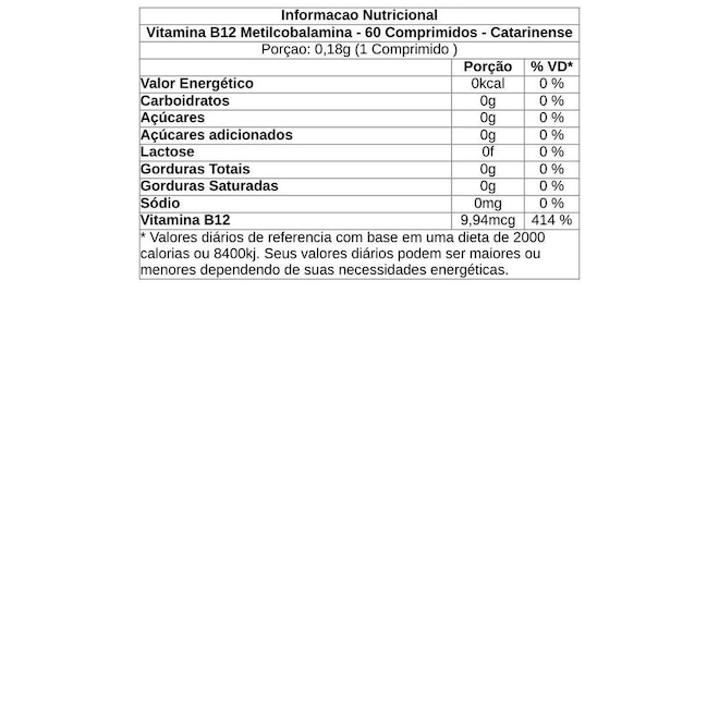 Nova Vitamina B12 do Catarinense Nutrição auxilia no metabolismo energético e imunidade com comprimido mastigável, Fácil ingestão, com Concentração máxima de 9,94 µg em sabor de frutas vermelhas.