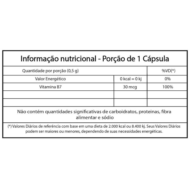 Ingredientes:biotina e excipiente q.s.p.500mg.