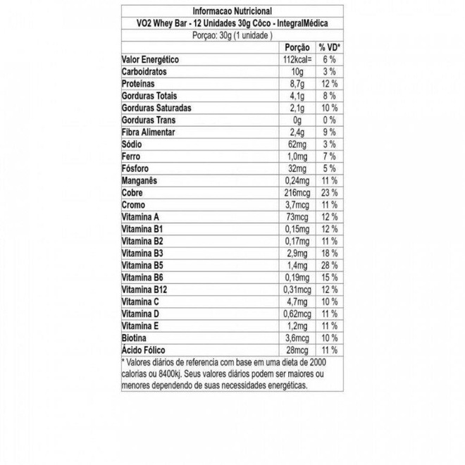 Descrição: VO2 Protein Bar c/ 24 Barras IntegralMédica