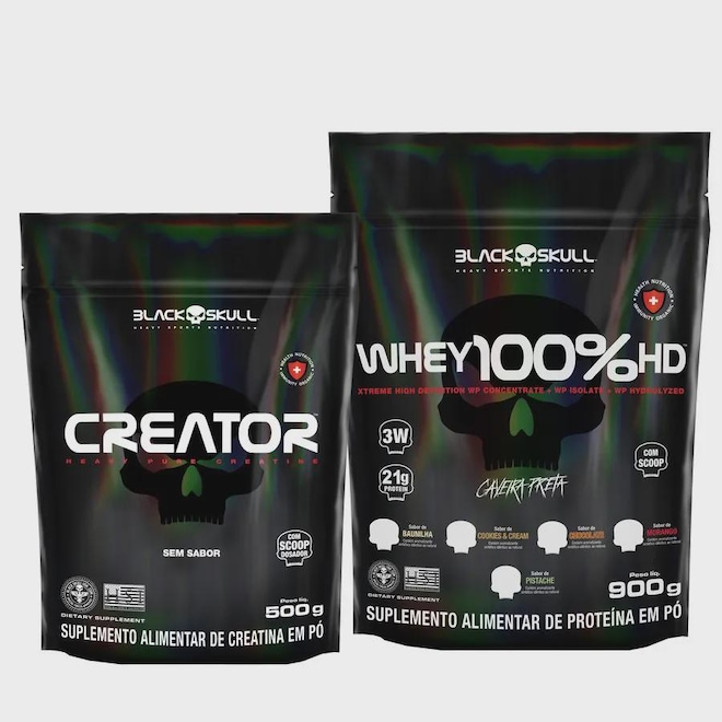 KIT BLACKSKULL™: Whey Protein 100% HD Refil + Creatina Creator!