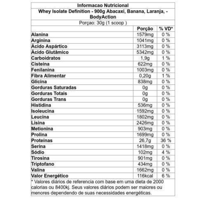Whey Protein Isolado Body Action Whey Isolate Definition - Abacaxi, Banana, Laranja - 900g