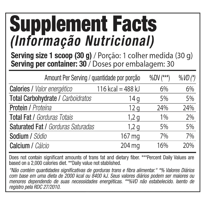 Tipo de Suplemento Proteína Sabor Sorvete de Baunilha Contém Glúten Não Sugestão de Consumo Pós-Treino Cuidados de Conservação Manter o produto bem fechado.