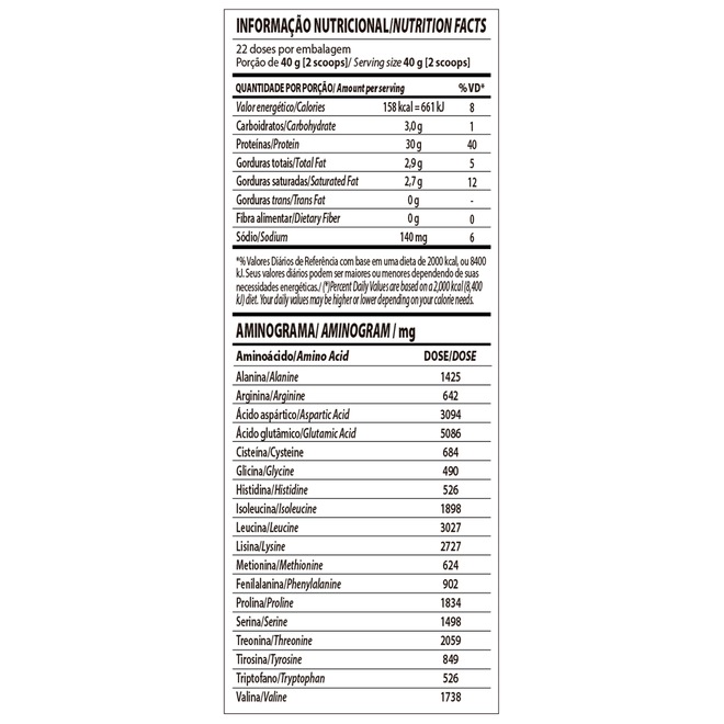 Tipo de Suplemento Proteína Indicado Ganho de Massa Magra Contém Glúten Sim Contém Lactose Sim Sugestão de Consumo Pós-Treino Cuidados de Conservação Manter o produto bem fechado.