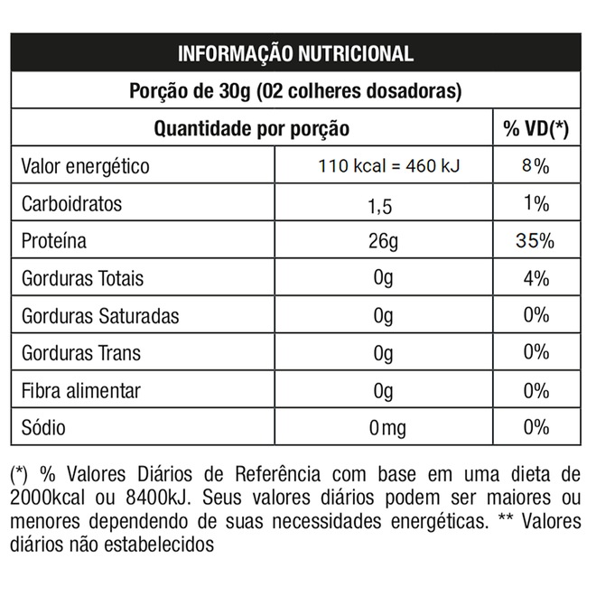 Tipo de Suplemento Proteína Indicado Manutenção Muscular Sabor Chocolate Sugestão de Consumo Pós-Treino Cuidados de Conservação Manter o produto bem fechado.