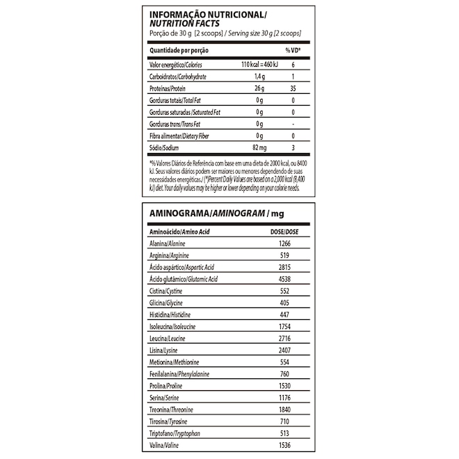 Manter o produto fora do alcance de crianças.Contém Glúten Não Contém Lactose Sim Tipo de Suplemento Proteína Indicado Massa Muscular Sugestão de Consumo Pós-Treino