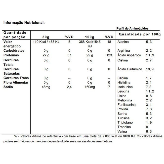 Isento de açúcares e lactose, fornece 27 g de proteína por porção.Garantia contra defeito de fabricação.
